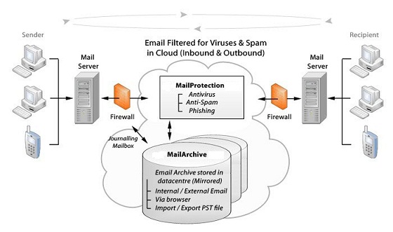 We provide easy and affordable hosted email archiving solution. When bundled with Hosted Mail Protection, it provides an integrated solution and a single console for email security, email continuity, and email archive. After filtration all valid emails copies of all inbound, outbound and internal email messages are then archived with full audit logs.